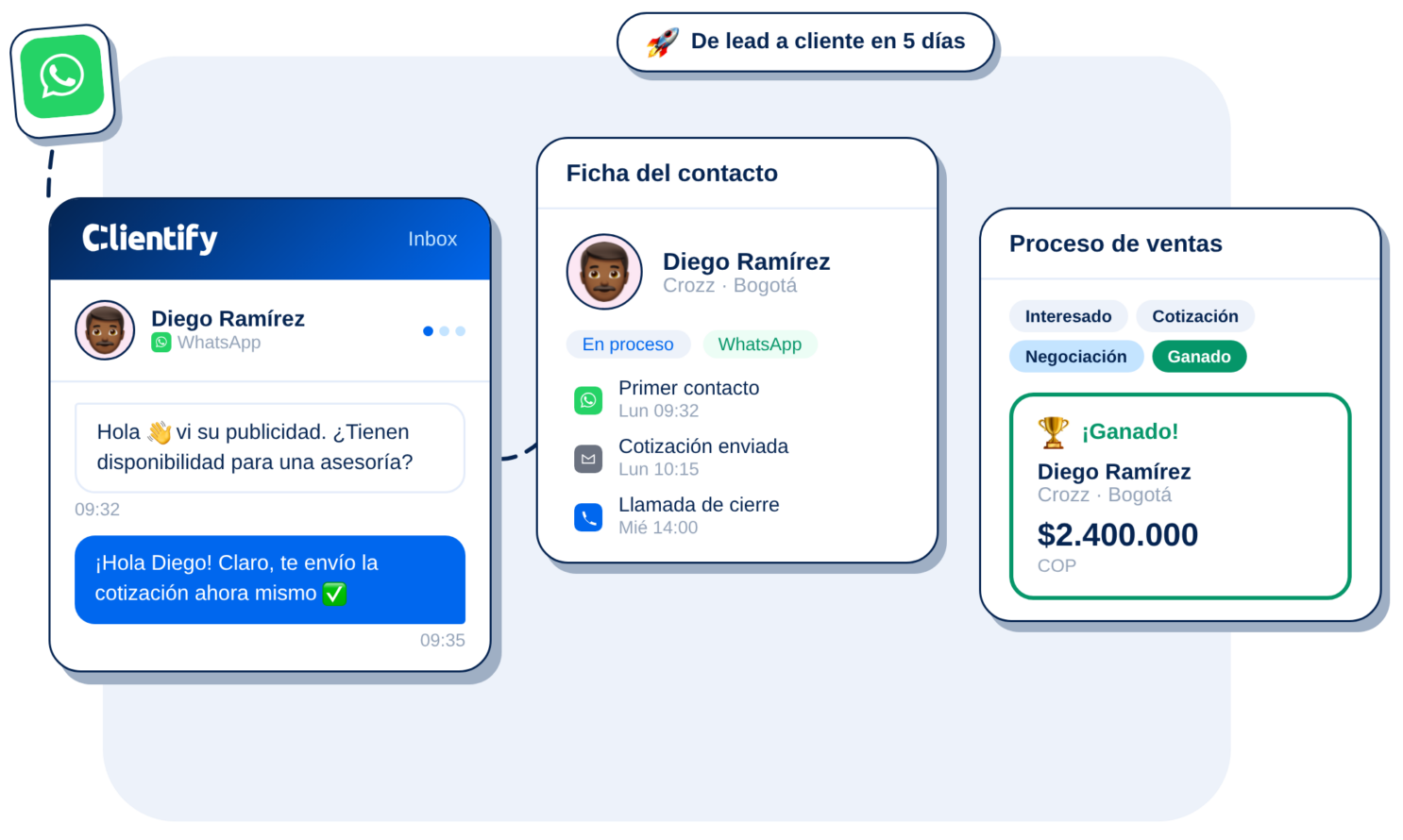 Cada oportunidad visible, desde el primer mensaje hasta el cierre
